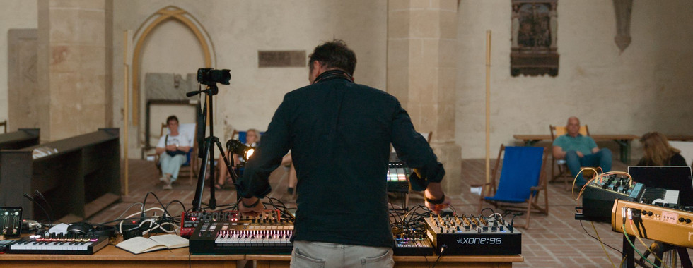 „Sonus Urbis“ ist längst keine lokale Randerscheinung mehr. Woanders mögen wir über die Lautstärke der Stadt klagen, hier in Erfurt wird ihr Klang in den Vordergrund gerückt. Die St. Georg Kirche war eine der ersten Stationen, deren besondere Atmosphäre wir für unsere Experimente genutzt haben – ein Erlebnis, das auch auf „aussicht.online“ seine Würdigung fand. Zuletzt, am 24. Juni 2025, zur „Langen Nacht der Kirchen und Synagogen“, füllten unsere Klänge die ehrwürdige Predigerkirche Erfurt. Davor schon die Barfüßerkirche. Orte, die man sonst vielleicht eher mit stillem Gebet oder historischer Betrachtung verbindet, wurden zu Resonanzräumen für analoge und digitale Synthesizer.